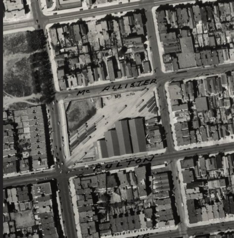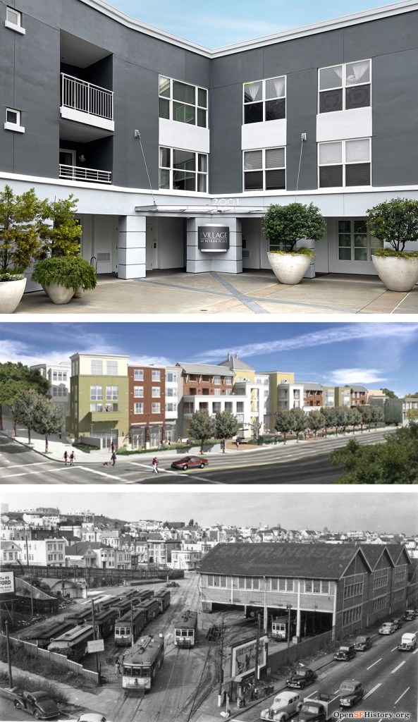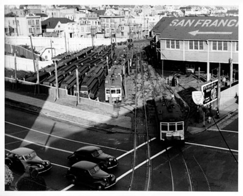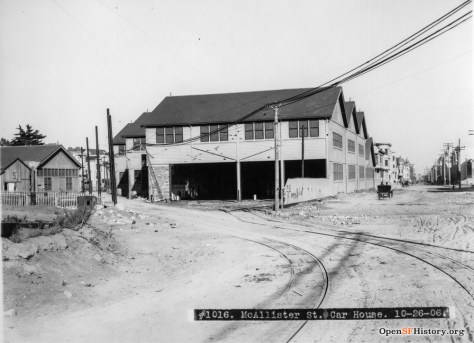 Originally on the site was the McAllister Car Barn and Powerhouse which was built in 1883. Owned by the Market Street Railway, the car barn was on the #5 McAllister cable car line which ran from the barn to the Ferry Building. The streetcar line lasted until 1948, when it was eventually replaced by buses.