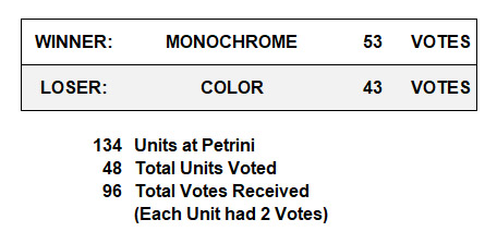 Based on the majority of owner votes, the MONOCHROME paint scheme will be implemented when painting starts in the first week of April 2023.