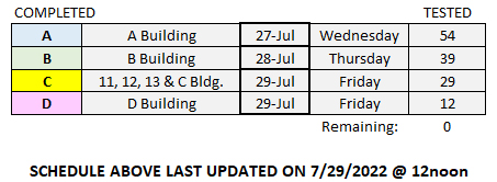Alarm Sounder Testing & Sprinkler Head Inspections for Petrini has been completed. There will be additional testing for failed sounders and for units that did not provide access. Property management will contact the affected units. Thank you for your cooperation!