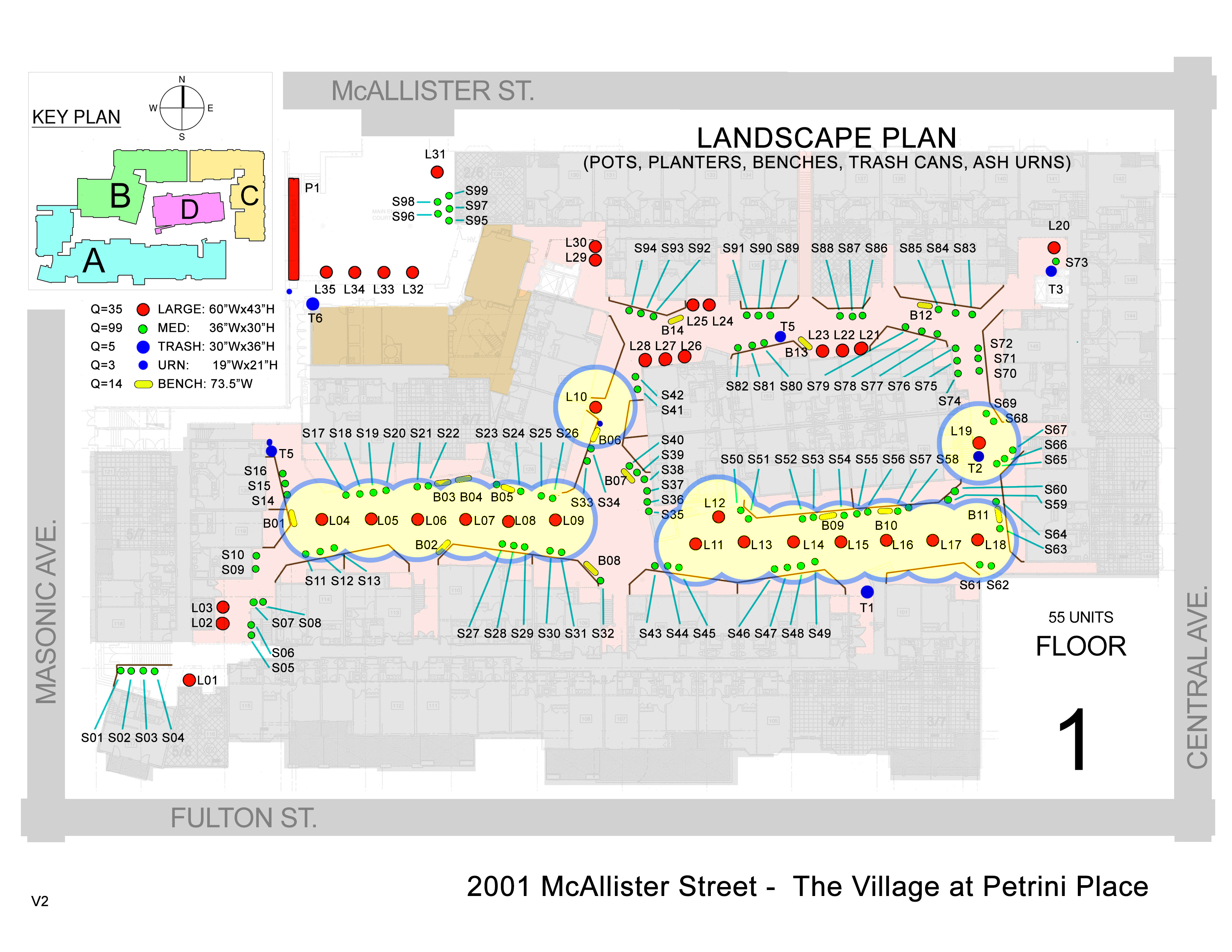 - Over the past 23 years, many pots have been damaged and removed leaving gaps in the landscape plan.
