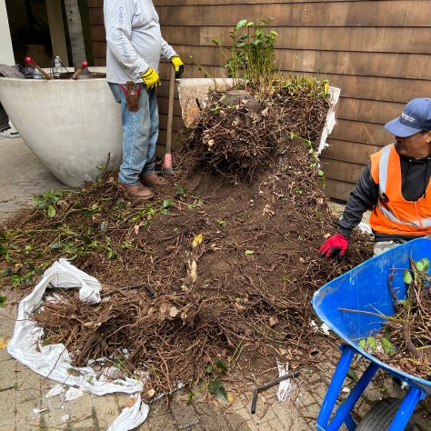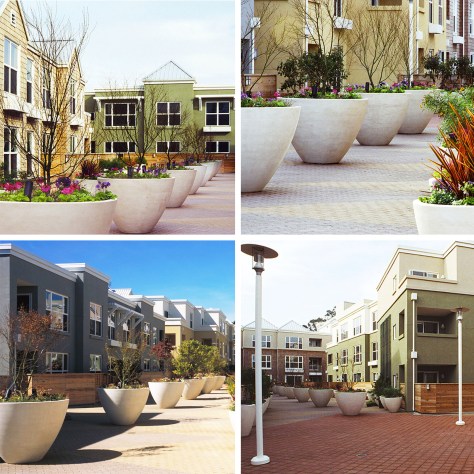 - Root-bound trees, especially during storms where wind pressure puts stress on the tree and root ball, easily crack cement pots. Cracked pots are immediately removed for safety. Pot removal is quite expensive and leaves a space in the courtyard with irrigation and electrical wiring exposed.